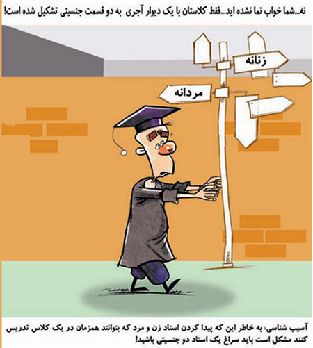 میتوان تصور کرد که در درب ورودی دانشگاه شیراز عینک های سه بعدی با شیشه های عظیمی داده می شود که- در مناطقی که واقعا نمیشود تفکیک جنسیت را اجرا نمود- زنان مردان را به شکل زن و مردان زنان را به شکل مرد ببینند و به گناه دچار نگردند!